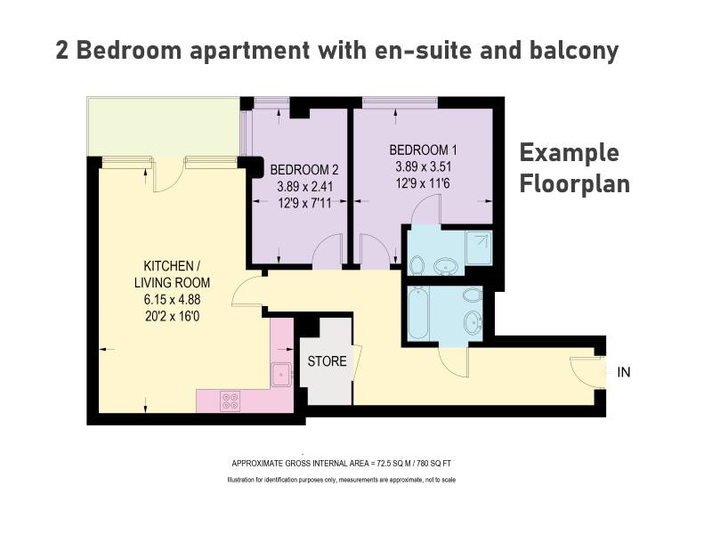 A variety of 2 bedroom apartments, some en-suite and some with a balcony.
